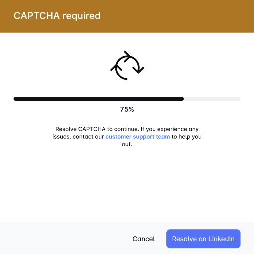 Encountering a CAPTCHA while setting up LinkedIn? 🧩 Simply click "Try by yourself," solve the puzzle, and enter the PIN to complete setup. We’re dedicated to making your LeadsULove experience seamless. Enjoy! 🚀