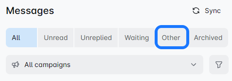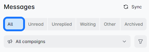 Once you connect your LinkedIn profile to the LeadsULove, this filter shows your non-campaign-based messages. ❗ Messages sent before connecting your account won't appear here.