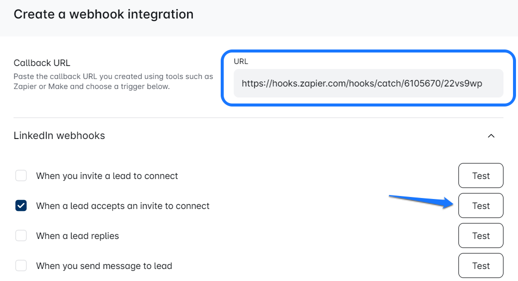 - Go back to the LeadsULove and paste the webhook URL into the appropriate field.