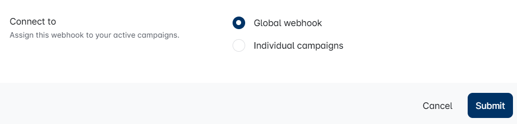 Decide if you want to create a webhook for all your campaigns (Global Webhook) or just specific ones.