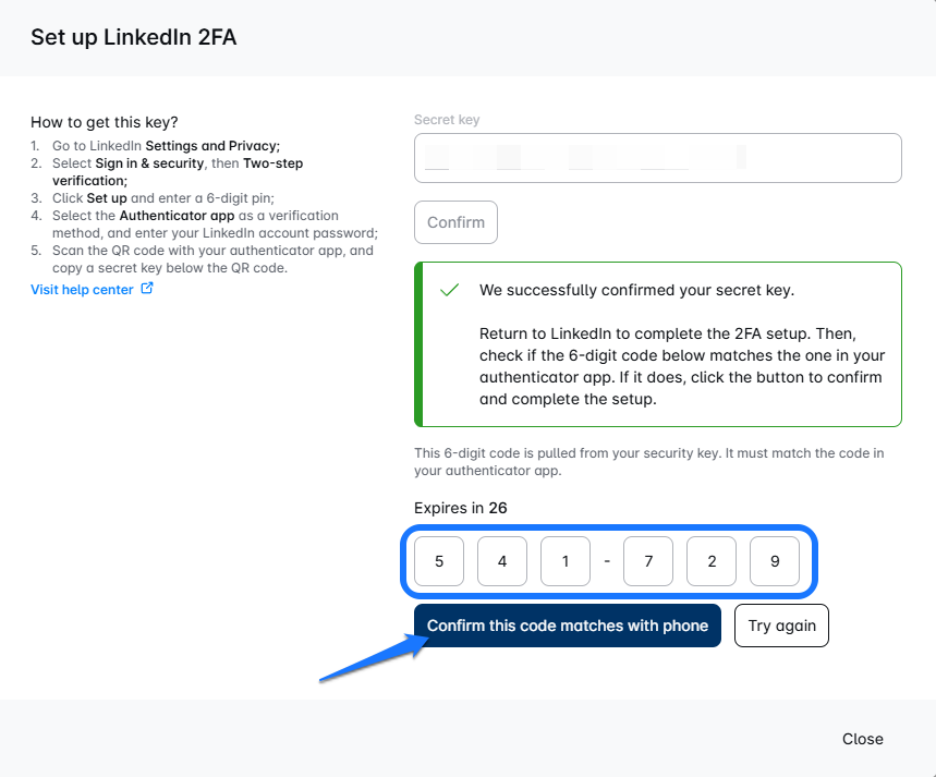 Is LinkedIn asking you to turn on two-factor authentication (2FA)? No stress — we’ve got your back! You’ll only need to do this setup once, and then we’ll automatically handle the 2FA codes for you (yep, no more typing in those numbers every time 😎).