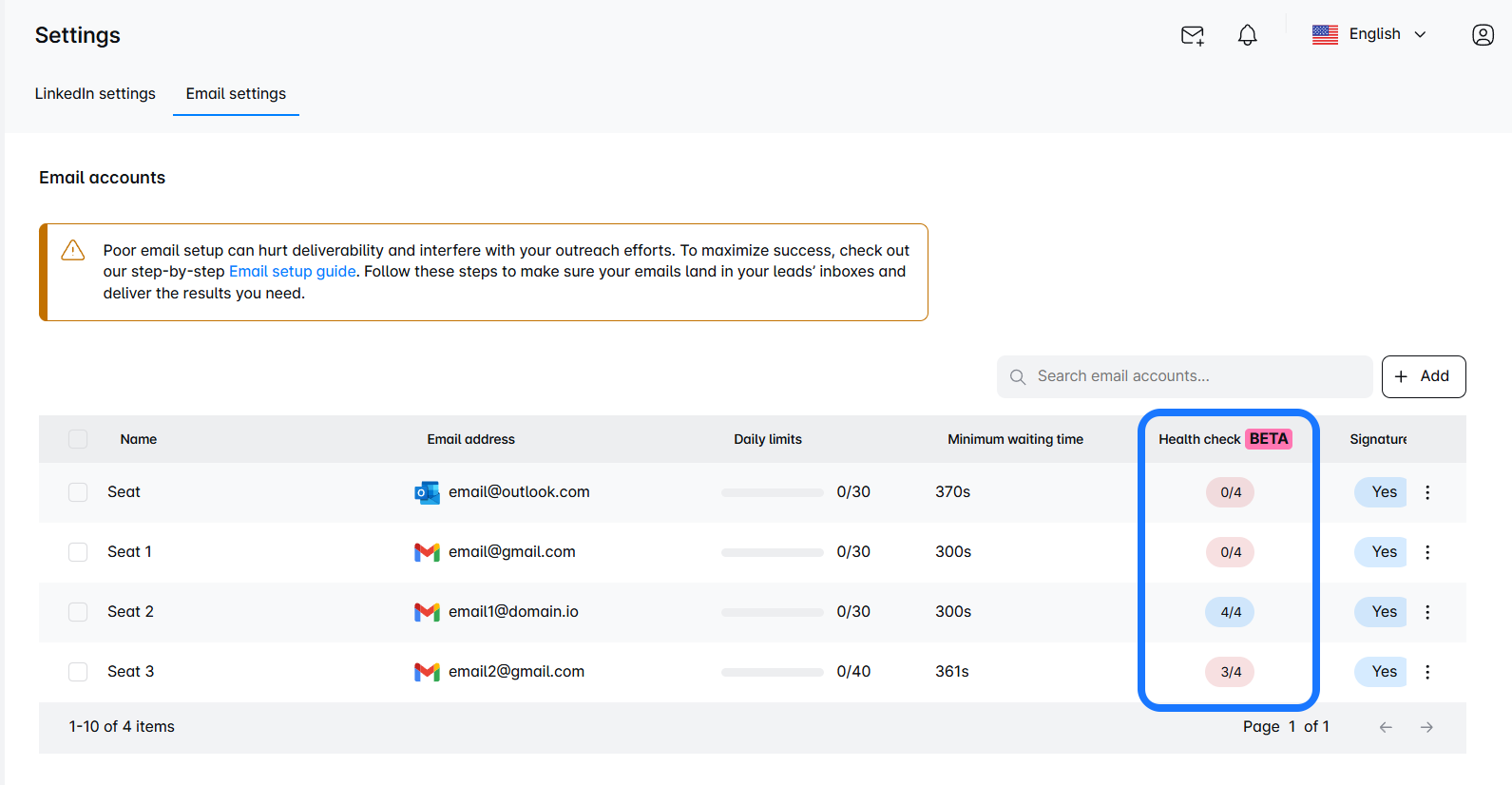 We’re introducing a brand-new Email Health Check feature to make sure your emails are always ready to run campaigns smoothly. Every connected email is automatically checked once a week, so you don’t have to worry about hidden issues affecting your results.
